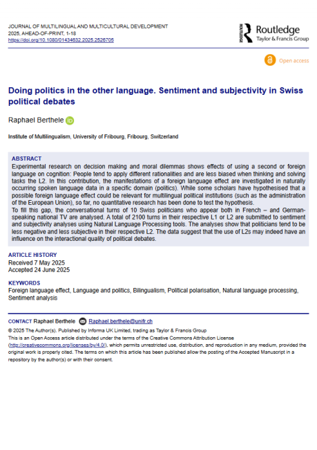 Doing politics in the other language. Sentiment and subjectivity in Swiss political debates